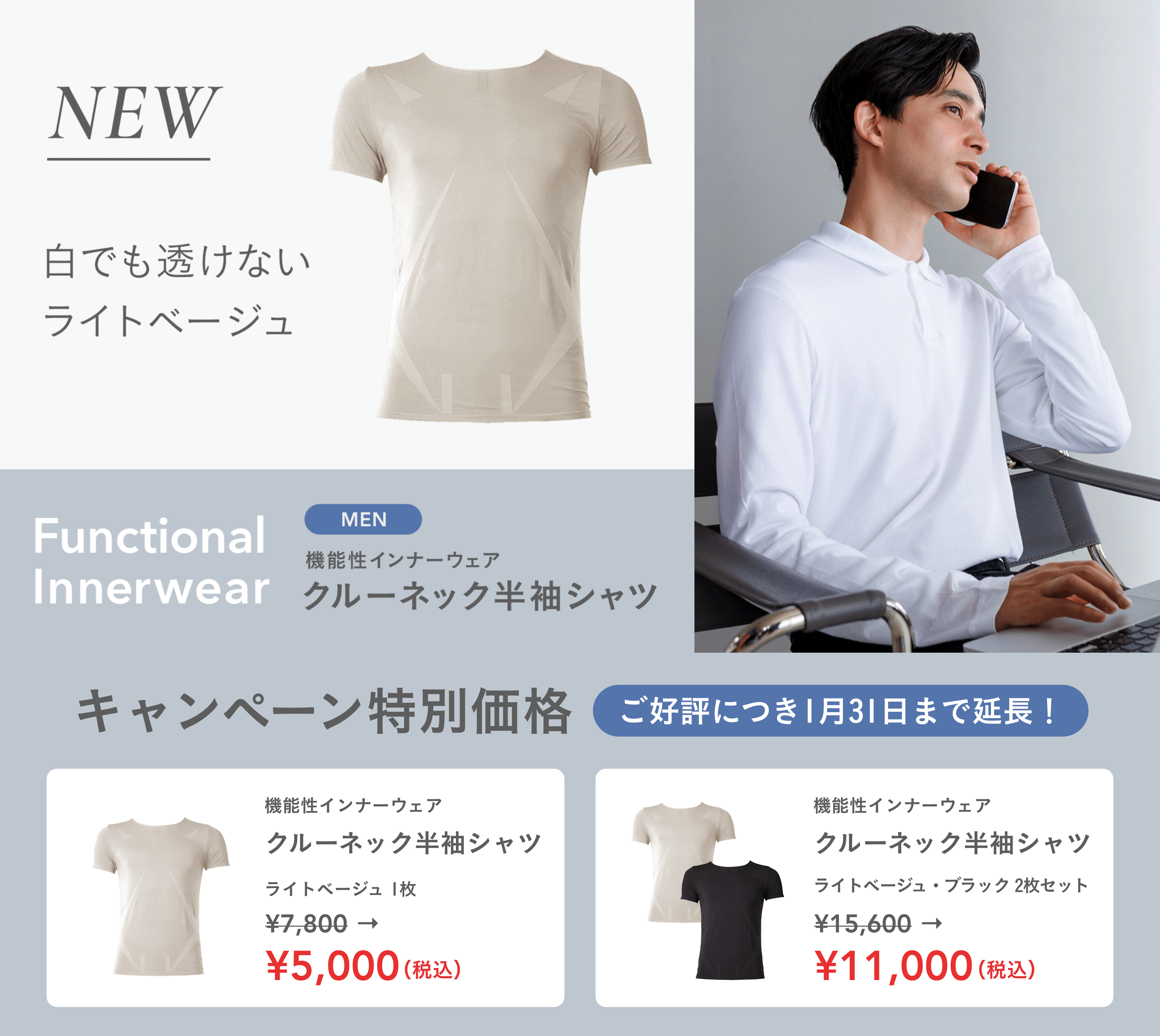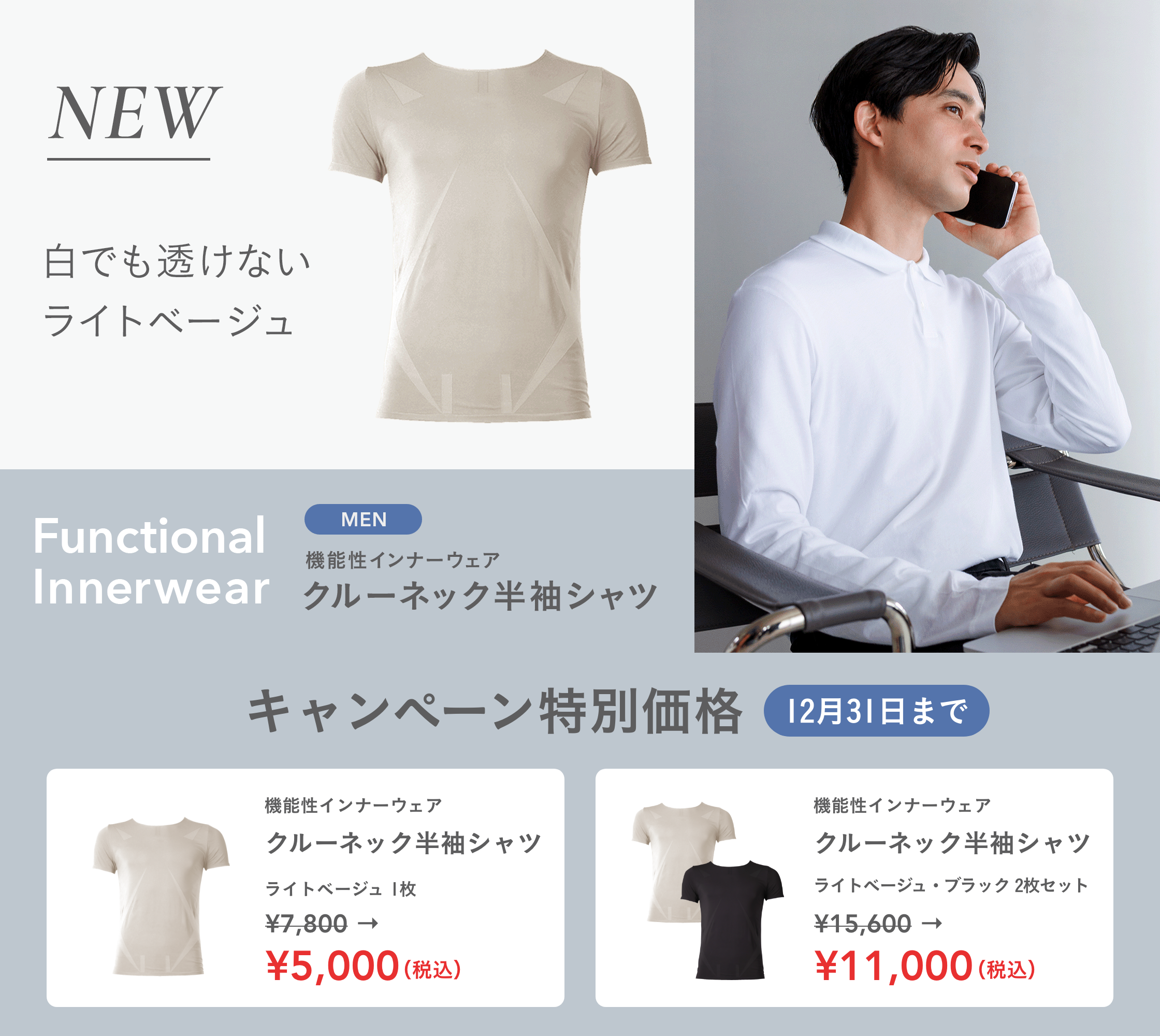 【キャンペーン】DERIT TECH(デリットテック)機能性インナーウェア クルーネック 半袖シャツ(男性用)ライトベージュ M
